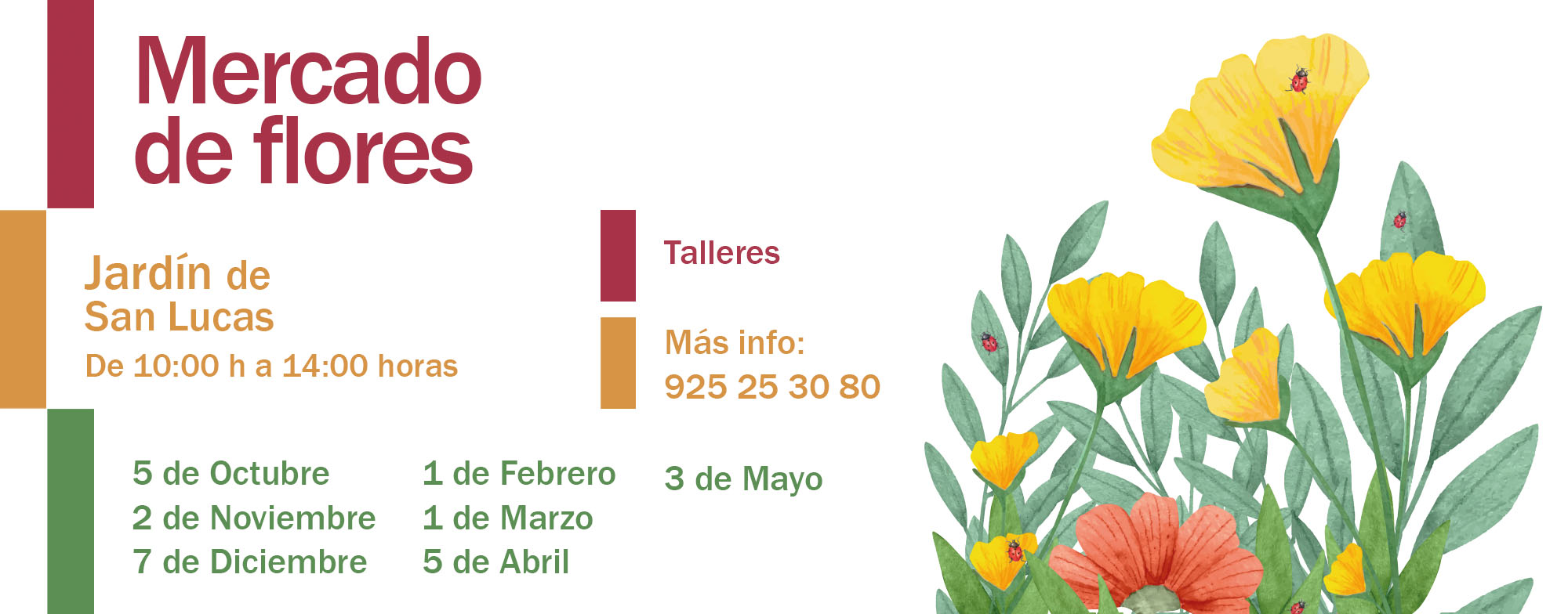 El Mercado de las Flores se desarrolla en el jardín de la iglesia de San Lucas, espacio recuperado y gestionado por el Consorcio de la Ciudad de Toledo.  Reúne a expositores profesionales y aficionados del sector: viveros, floristerías, artistas de las flores, huertos de ocio. Es una iniciativa del Consorcio para dinamizar sus espacios recuperados y darles vida.